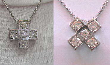 持ち込みの製品 @ダイヤメレ3石使用にてプラチナ地金加工 ABk18地金にて加工 ペンダント3点リフォーム依頼です。 その他・ルース外して下地金に余りは地金・メレも返却 (持ち込みプラチナチェーン溶かさずそのまま返却) ネックチエーンもご指定の長さ・デザインで対応いたしました。 |